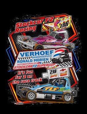 We hebben er een paar jaar mee gewacht, maar nu is er ook kleding van de F2 stockcar supercup te verkrijgen. Op de voorkant van de kleding staat de afbeelding van de winnaars van 2023, senioren en junioren. Achterop staat de kalender van de kwalificatie wedstrijden in 2024. Bij aankoop hiervan steunt je ook de Supercup!